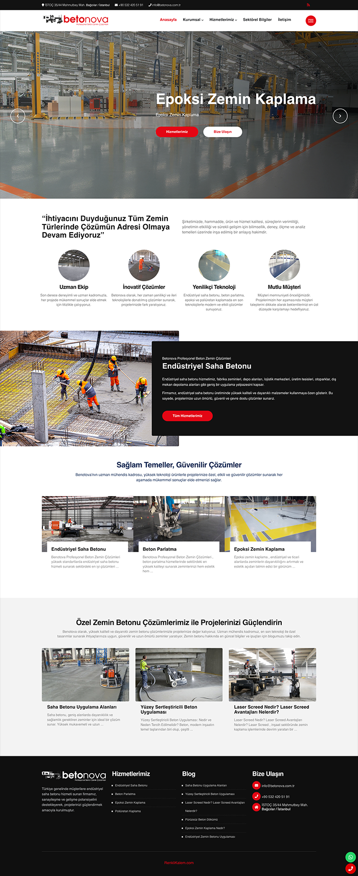 Betonova firması için gerçekleştirilen web sitesi çalışması kapsamında, Renkli Kalem Web Tasarım Ajansı olarak, endüstriyel saha betonu uygulamalarına yönelik güçlü ve modern bir dijital varlık oluşturduk. Bu proje çerçevesinde, firmanın sektördeki profesyonelliğini yansıtan etkili bir web tasarımı geliştirdik, SEO çalışmaları ile arama motorlarındaki görünürlüğünü artırdık ve kullanıcı dostu bir yönetim paneli yazılımı sunarak, sitenin kolayca yönetilmesini sağladık. Betonova'nın iş süreçlerine değer katan bu kapsamlı hizmetler, firmanın dijital dünyada güçlü bir yer edinmesine katkıda bulundu.