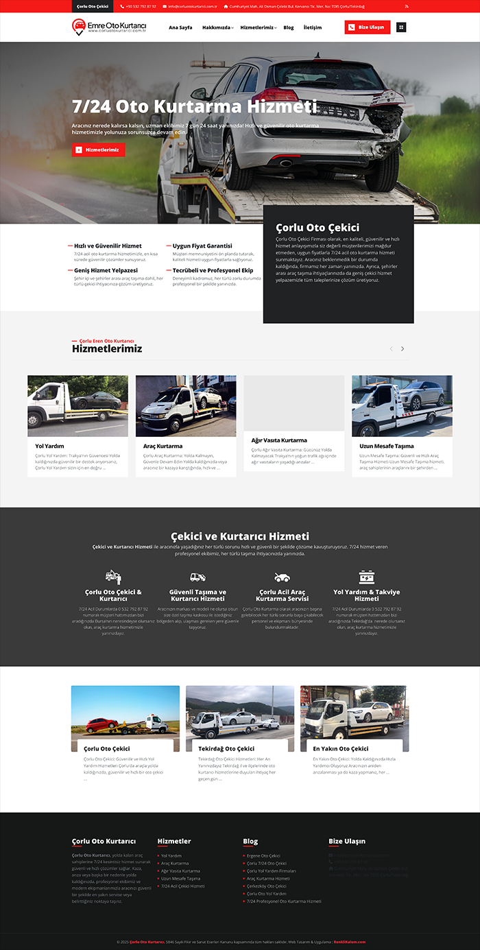 Çorlu Emre Oto Kurtarıcı için sağladığımız web tasarım, web yazılım ve SEO çalışmalarıyla, firmanın dijital varlığını güçlendirdik. Kullanıcı dostu tasarımımız ve SEO odaklı içerik stratejimiz sayesinde, Çorlu Emre Oto Kurtarıcı'nın online görünürlüğünü artırarak, müşteri etkileşimlerini ve dönüşümlerini önemli ölçüde yükselttik.