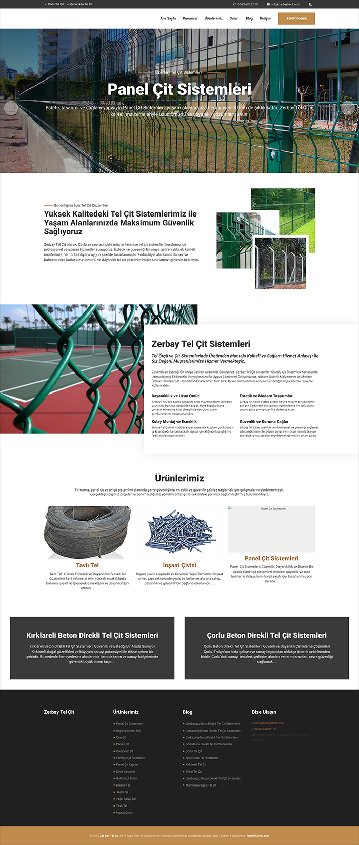 Çorlu bölgesinde tel çit ve panel çit üretimi ve uygulaması alanında faaliyet gösteren Zerbay Tel Çit, dijital varlığını güçlendirmek ve müşteri kitlesine daha etkili bir şekilde ulaşmak için Renkli Kalem Web Tasarım Ajansı ile çalışmayı tercih etti.