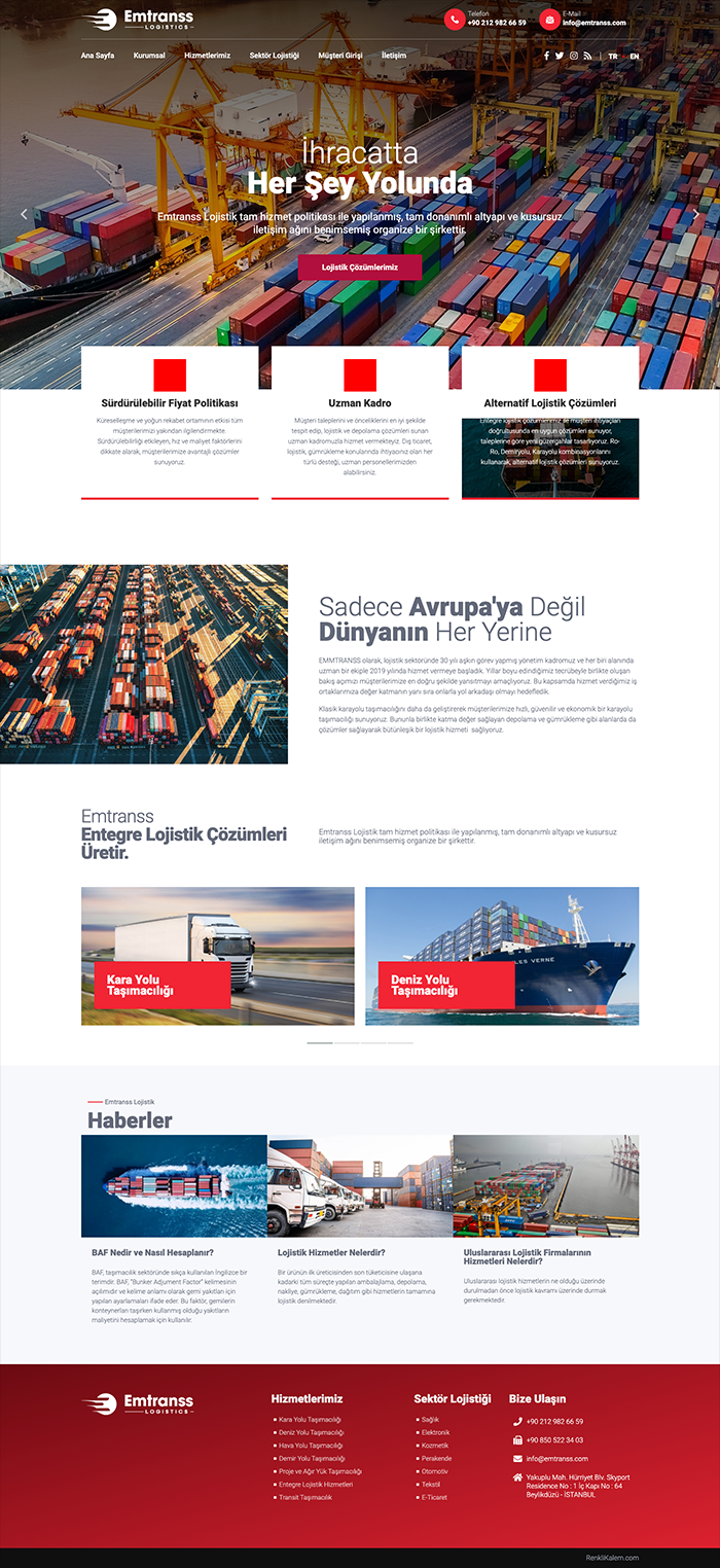 Emtranss Lojistik için uluslararası karayolu, demiryolu ve havayolu taşımacılığı alanındaki güçlü varlığını dijital dünyada da yansıtmak amacıyla kapsamlı bir çalışma gerçekleştirdik. Öncelikle, firmanın marka kimliğini ve hizmet kalitesini öne çıkaran modern ve kullanıcı dostu bir web sitesi tasarladık. Aynı zamanda, Emtranss Lojistik’in operasyonlarını daha verimli yönetebilmesi için özel bir yönetim paneli yazılımı geliştirdik. Arama motorlarında görünürlüğünü artırmak ve potansiyel müşterilere daha hızlı ulaşmasını sağlamak amacıyla detaylı bir SEO çalışması gerçekleştirdik. Bu çalışmalarımız sayesinde, Emtranss Lojistik, dijital dünyada da güçlü bir varlık sergileyerek müşteri kitlesine daha etkili bir şekilde ulaşma imkânına kavuştu.